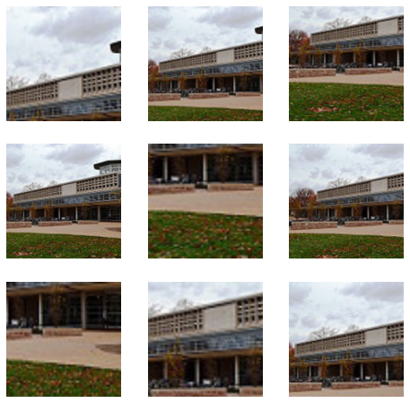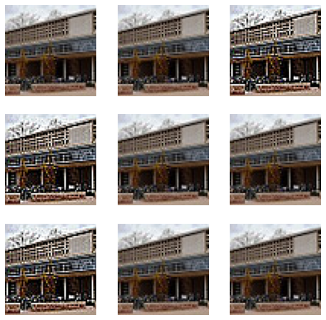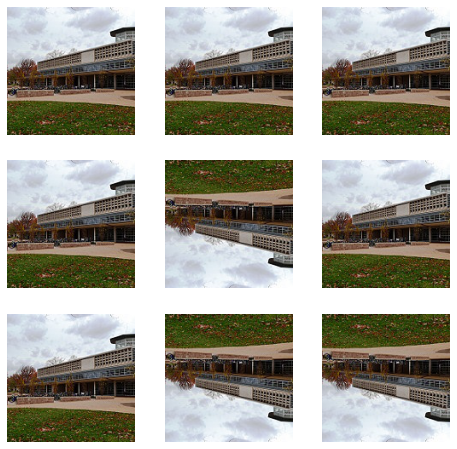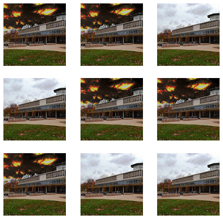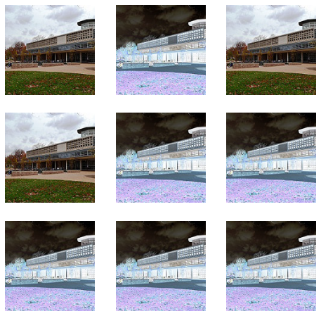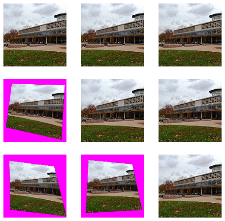 모든 transform들이 확률에 따라 랜덤하게 적용되기 때문에, 총 9개의 이미지에 적용시켜서 3x3 으로 확인할 것이다.