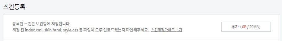 블로그 관리 ➝ 꾸미기 ➝ 스킨 변경 ➝ 스킨 등록 ➝ 추가 ➝ 압축 파일 선택 후 불러오기 및 저장