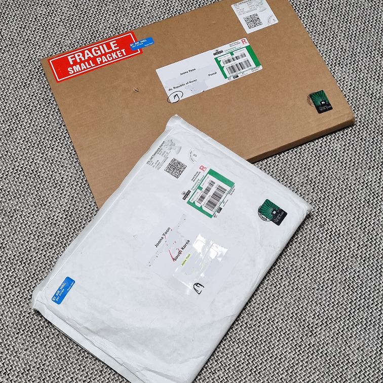 소포는 영국에서 잘 오다가 집 바로 앞에서 갑자기 유턴했는데, 전화해서 물어보니 집 나머지 주소가 잘못되어서 다시 영국으로 반송되려고 인천까지 갔었다.